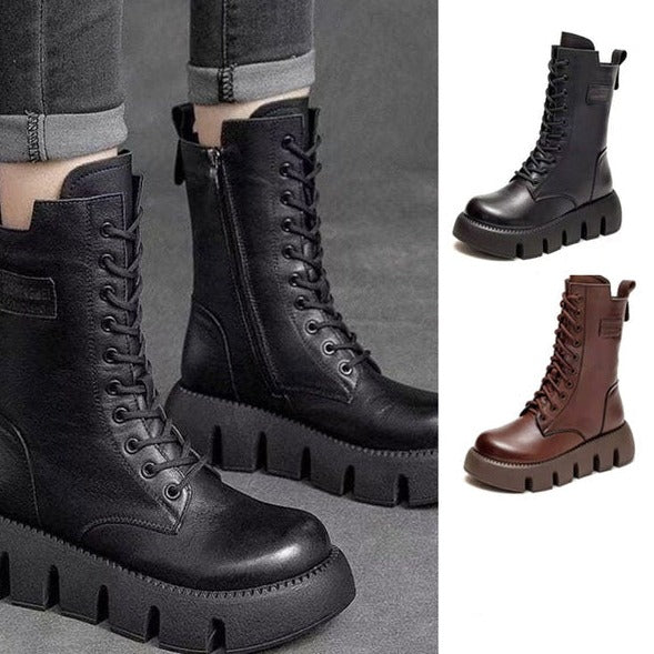 • Stijlvolle Veelzijdigheid: De "Klassieke Elegantie: Dames Comfortlaarzen" belichamen modieuze schoenen. Hun unieke ontwerp stelt je in staat moeiteloos te schakelen tussen een stoere punkrock-look en een praktische stijl, waardoor ze een veelzijdige toevoeging zijn aan je wintergarderobe.